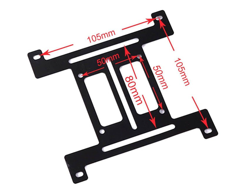 The Bykski 120mm Raised Multi Function Water Cooling Bracket mounts on any 120mm fan or radiator. This bracket has multiple mounting patterns allowing a wide range of compatibility. The center square mounting pattern is 50mm. A slotted 80mm mounting location is also available as well as other combinations.