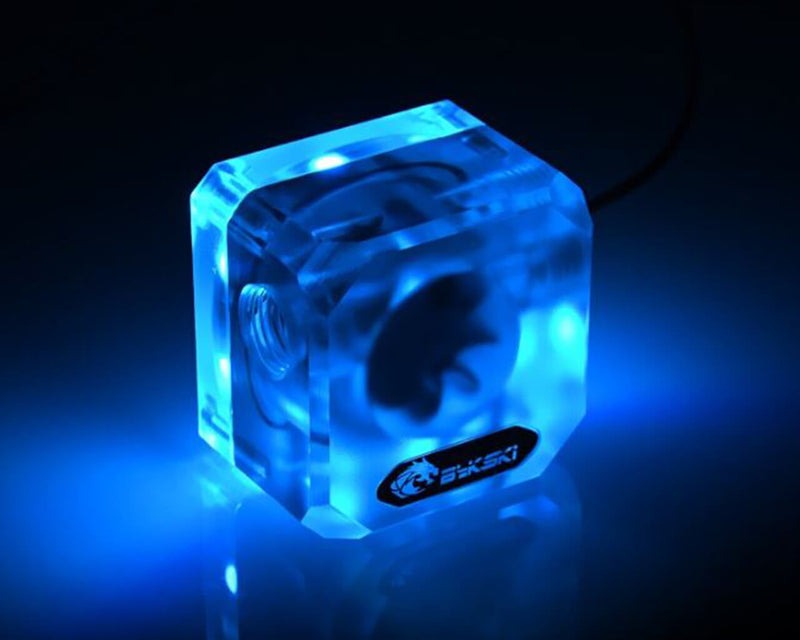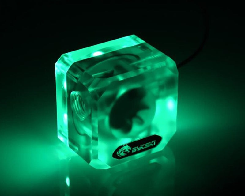 The Bykski 3-Way Flow Indicator is a square shape with ports on 3 sides. This gives a range of options when you integrate into your loop.