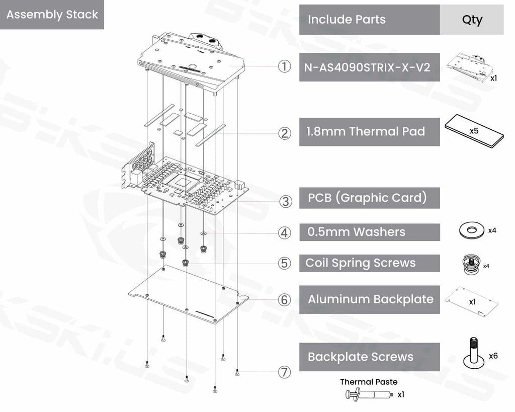 The manufacturer reserves the right to alter the block design to expand compatibility. The delivered item may not 100% match the pictured item. The product does NOT come with English instructions. Please see the product gallery images for the install guide if available. Generally, thermal pads should be installed on the card where the block has corresponding raised contact points, except the GPU core, which uses thermal paste. Installing pads on other components can lead to improper contact and poor performance.