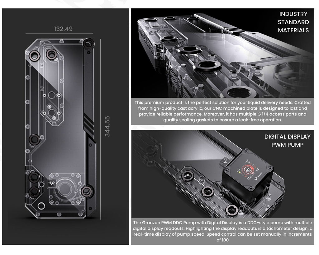 Granzon Distro (or Distribution) Plates are a unique way to outfit your loop. They are designed for a case-specific fit, allowing for clean, parallel lines and stunning visual appeal.